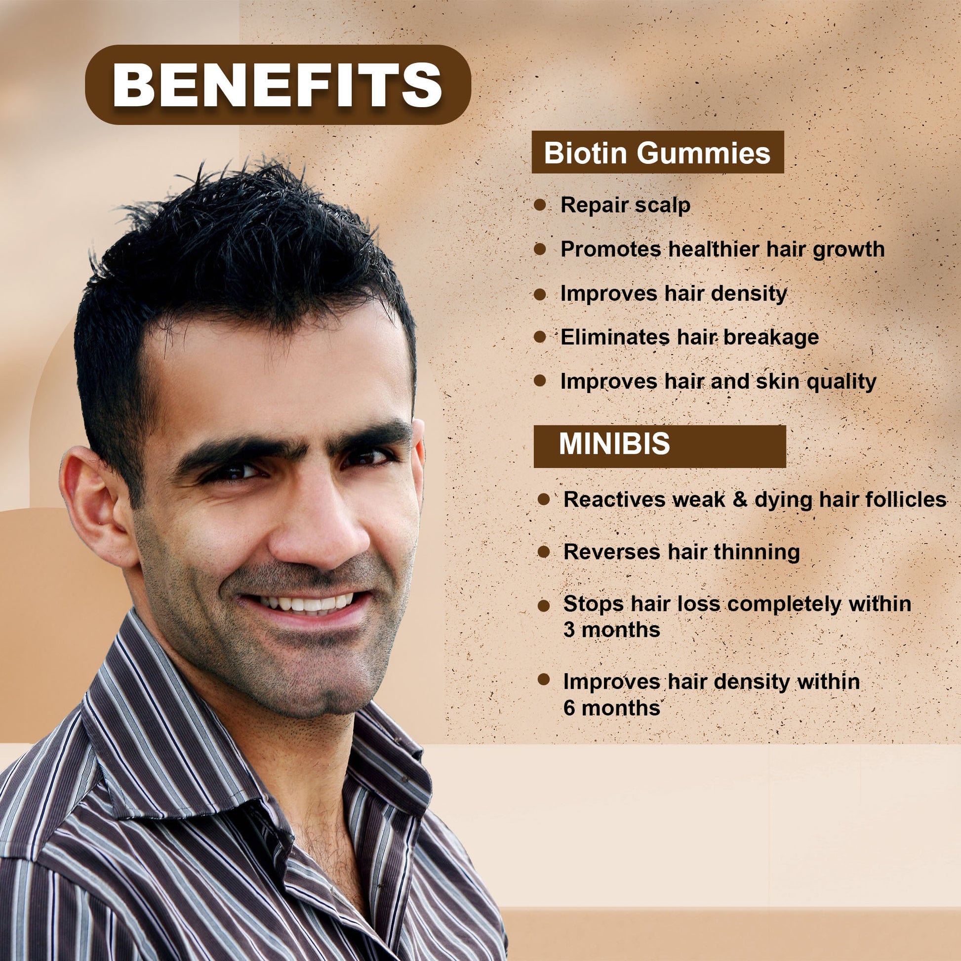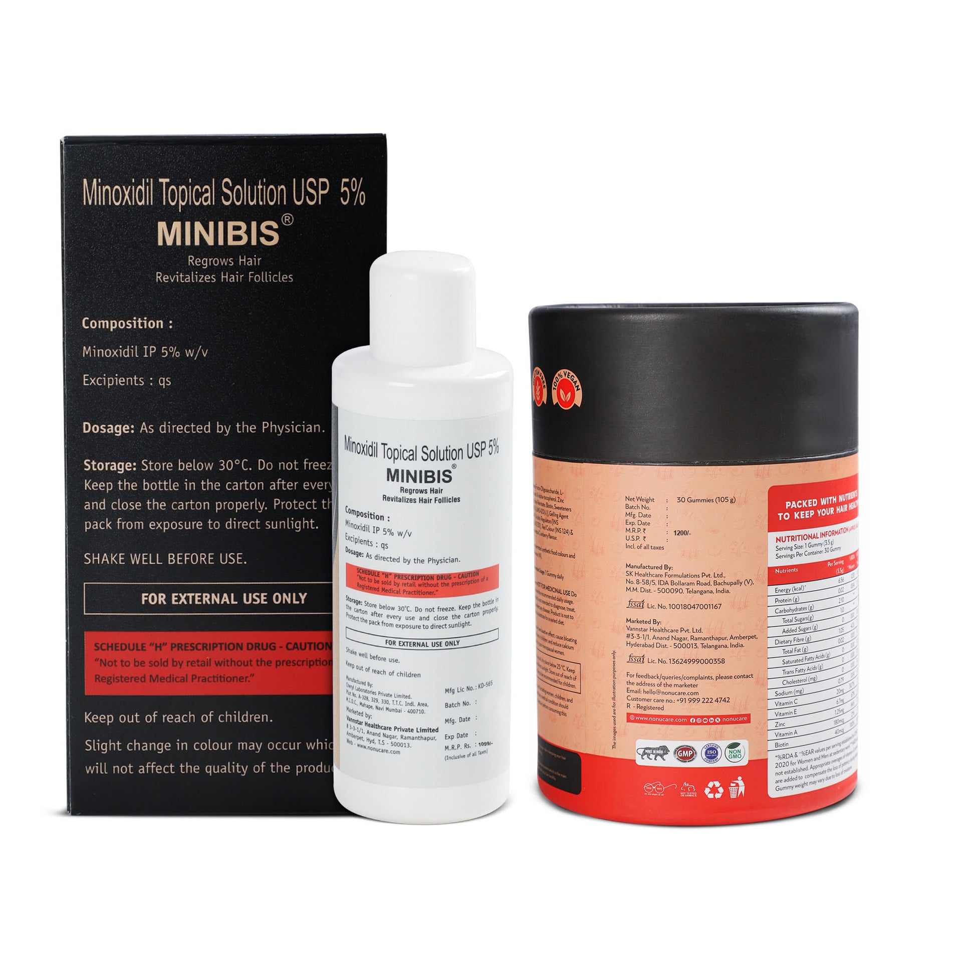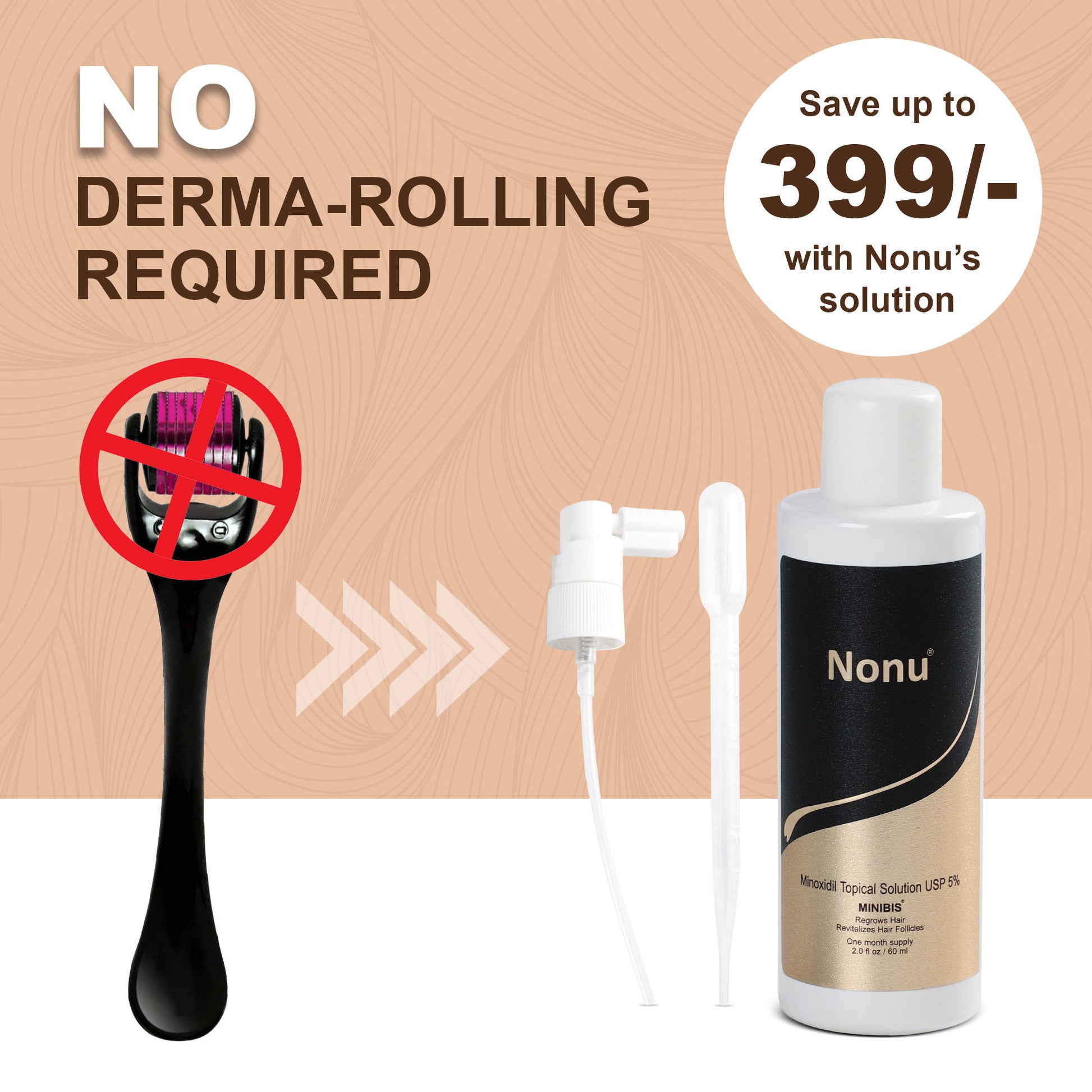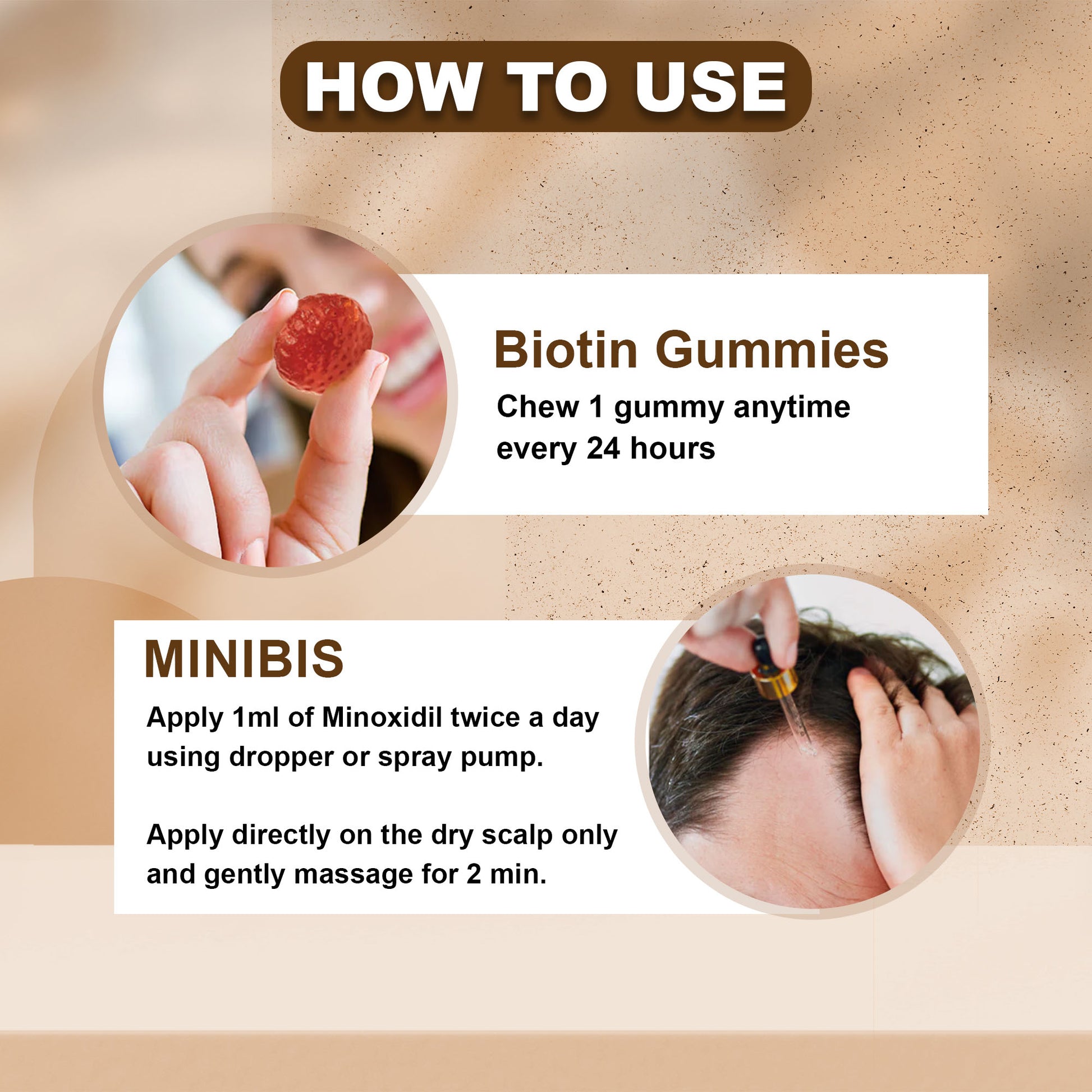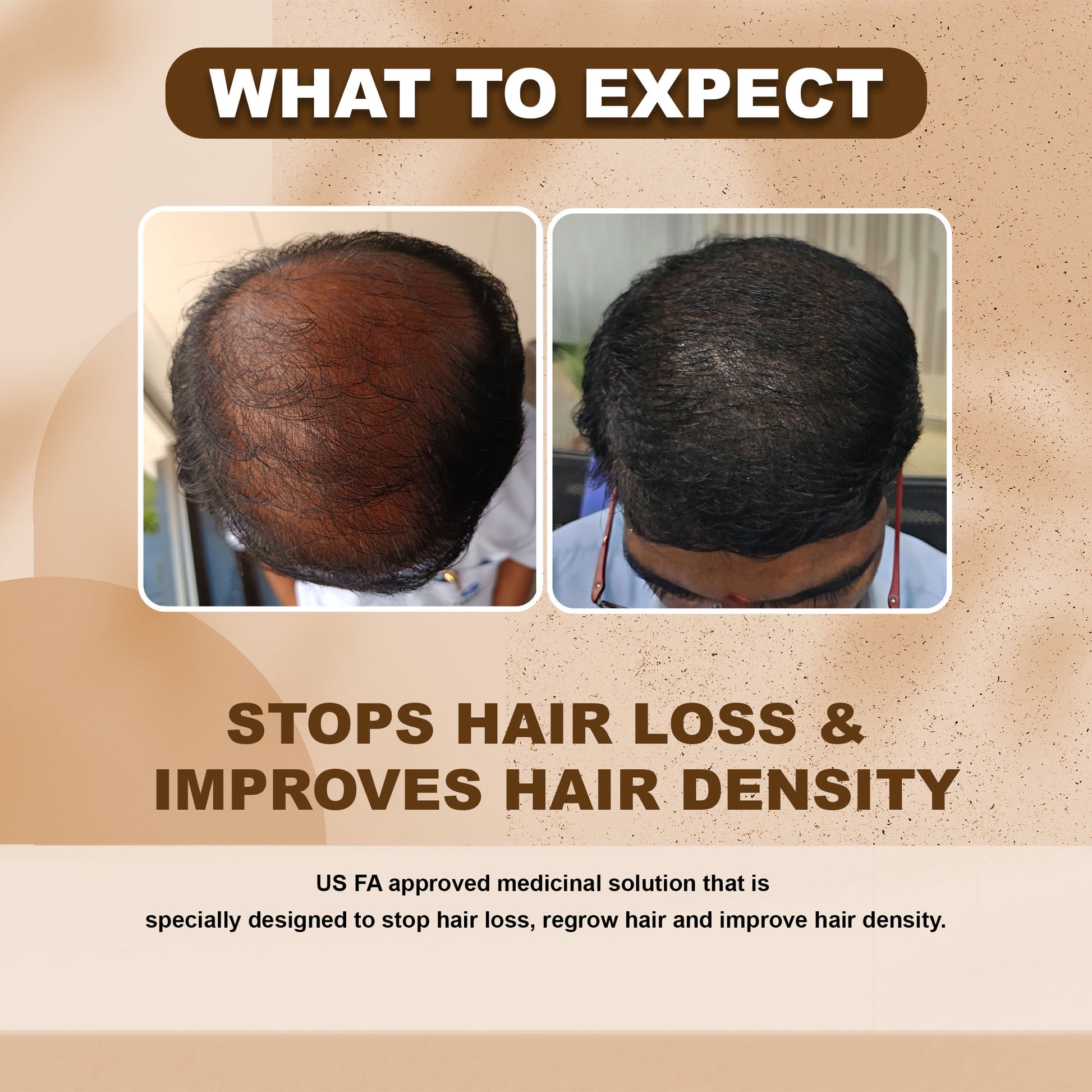 Minoxidil solution stops hair loss by improving blood supply to the scalp. With improved blood supply and nutrition, the sleeping hair follicles get activated and cause an increase in hair thickness, density.